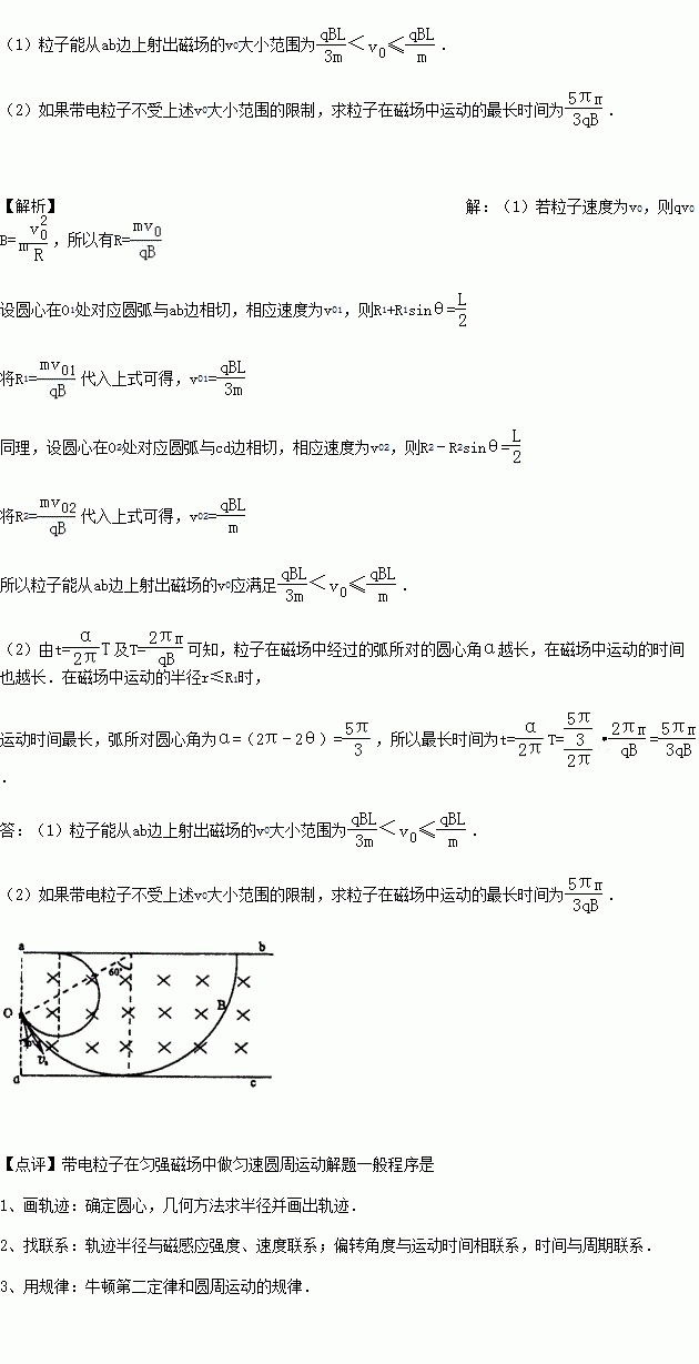 (1)粒子能从ab边上射出磁场的v0大小范围.