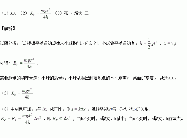 (1)本实验中可认为,弹簧被压缩后的弹性势能Ep与小球抛出时的动能Ek相等。已知重力加速度大小为g。为求得Ek,至少需要测量下列物理量中的________(填正确答案标号).