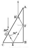 ,BC的长为L,E为BC边的中点。一束平行于AB的光束从AC边上的某点射入玻璃砖,进入玻璃砖后,在BC边上的E点被反射,EF是该反射光线,一且EF恰与AC平行。求: