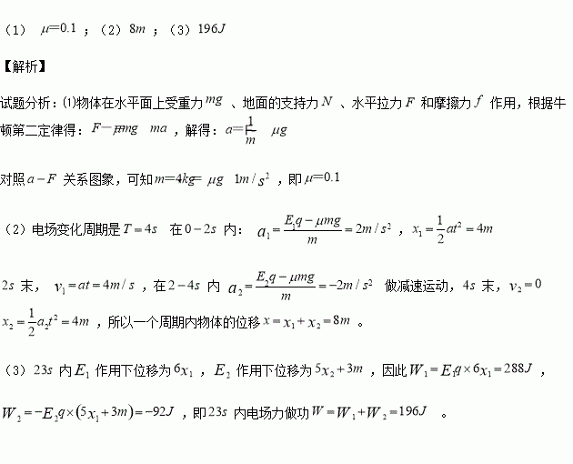 ⑶在图丙所示周期性变化的水平电场作用下,23s内电场力对物体所做的功。
