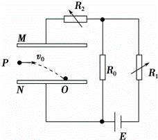 如图所示电路,在平行金属板M,N内部左侧中央P有一质量为m的带电粒子(重力不计)以水平速度v0射入电场并打在N板的O点.改变R1或R2的阻值,粒子仍以v0射入电场,则( )
