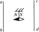 如图所示,ab、cd是两根在同一竖直平面内的直导线,在两导线中央悬挂一个小磁针,静止在同一竖直平面内.当两导线中通以大小相等的电流时,小磁针N极向纸面里转动,则两导线中的电流方向