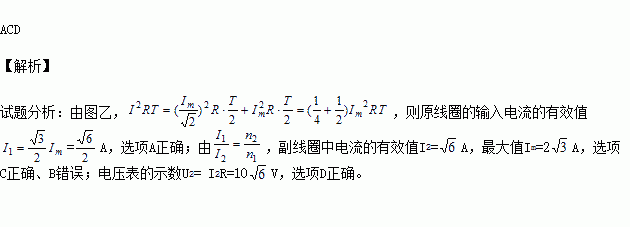如图甲所示的变压器电路中,理想变压器原、副线圈匝数之比为2:1,a、b输入端输入的电流如图乙所示,副线圈电路中电阻R=10Ω,电路中的电流表、电压表都是理想电表,下列说法正确的是( )