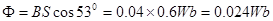与磁感强度B=0.8T垂直的线圈面积为0.05m2,线圈的磁通量多大?若这个线圈绕有50匝时,磁通量有多大?线圈位置如转过53°时磁通量多大?