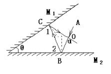 根据光的反射定律作好光路图,注意利用几何关系分析求解:由图可知: ,当两平面镜正对时,所以,两平面镜垂直时 ,,平行反射回去.