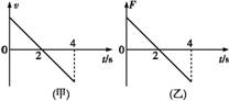 物体甲、乙原来静止于光滑水平面上.从t=0时刻开始,甲沿水平面做直线运动,速度随时间变化如图(甲)所示;乙受到如图(乙)所示的水平拉力作用.则在0~4 s的时间内( )
