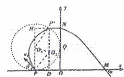 如图所示,在xoy平面的第II象限内有半径为R的圆分别与x轴、y轴相切于P、Q两点,圆内存在垂直于xoy面向外的匀强磁场。在第I象限内存在沿轴y负方向的匀强电场,电场强度为E。一带正电的粒子(不计重力)以速率v0从P点射入磁场后恰好垂直y轴进入电场,最后从M(3R,0)点射出电场,出射方向与x轴正方向夹角为α,且满足α=45°,求: