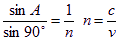 一束光从某介质射向空气,当入射角等于42°时发生全反射现象,求光在该介质中的光速等于多少?