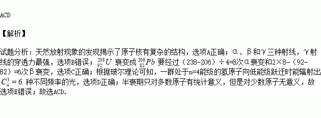 E. 10个放射性元素的原子核在经一个半衰期后,一定有5个原子核发生衰变