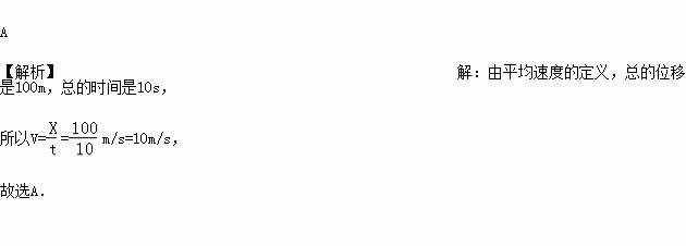 在100m竞赛中,测得某一运动员5s末瞬时速度为10.4m/s,10s末到达终点的瞬时速度为10.2m/s.则他在此竞赛中的平均速度为( )