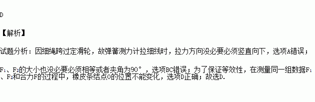 D.在测量同一组数据F1、F2和合力F的过程中,橡皮条结点O的位置不能变化