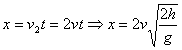(2)已知导弹爆炸时离水平距离的高度为h,炸裂后的两块落到地面上时相距为多远?