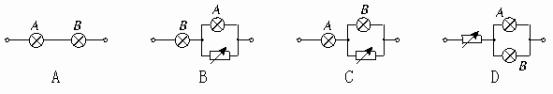 额定电压都是110V,额定功率PA=100W,PB=40W的A、B两灯,接在220V的电路中,使电灯均正常发光,能使电路消耗的电功率最小的电路是图中的( )