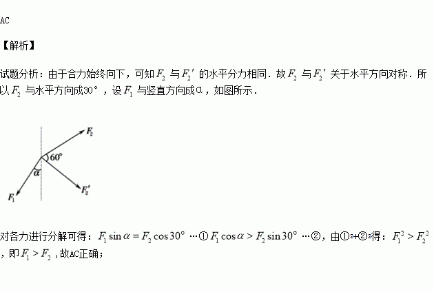 的方向在竖直平面内转过600角,合力的方向仍竖直向下,下例说法中正确的是