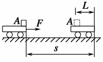 如下图所示,一平板小车在外力作用下由静止向右滑行了一段距离s,同时车上的物体A相对车向左滑行L,此过程中物体A受到的摩擦力方向如何?该摩擦力是动力还是阻力( )