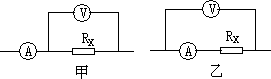 有一未知电阻Rx,为较准确地测出其阻值,先后用下图中(a)、(b)两种电路进行测试,利用甲图测得的数据是“2.8 V,5.0 mA”,而用乙图测得的数据是“3.0 V,4.0 mA”,那么该电阻测得的较为准确的情况是