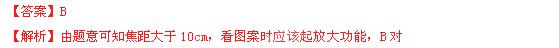 A.大于10 cm B.小于10cm C.大于20cm D.在10cm和20cm之间