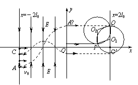 ÈçͼËùʾµÄÖ±½Ç×ø±êϵÖУ¬ÔÚÖ±Ïßx = -2l0µ½yÖáÇøÓòÄÚ´æÔÚ×ÅÁ½¸ö´óСÏàµÈ¡¢·½ÏòÏà·´µÄÓнçÔÈÇ¿µç³¡£¬ÆäÖÐxÖáÉÏ·½µÄµç³¡·½ÏòÑØyÖḺ·½Ïò£¬xÖáÏ·½µÄµç³¡·½ÏòÑØyÖáÕý·½Ïò¡£Ôڵ糡×ó±ß½çÉÏA£¨-2l0£¬-l0£©µ½C£¨-2l0£¬0£©ÇøÓòÄÚµÄijЩλÖ㬷ֲ¼×ŵçºÉÁ¿Îª+q¡¢ÖÊÁ¿ÎªmµÄÁ£×Ó¡£´Óijʱ¿ÌÆðAµãµ½Cµã¼äµÄÁ£×Ó£¬ÒÀ´ÎÒÔÏàͬµÄËÙ¶Èv0ÑØxÖáÕý·½ÏòÉäÈëµç³¡¡£Èô´ÓAµãÉäÈëµÄÁ£×Ó£¬Ç¡ºÃ´ÓyÖáÉϵÄA¡ä£¨0£¬l0£©ÑØxÖáÕý·½ÏòÉä³öµç³¡£¬Æä¹ì¼£ÈçͼËùʾ¡£²»¼ÆÁ£×ÓµÄÖØÁ¦¼°ËüÃǼäµÄÏ໥×÷Óá£