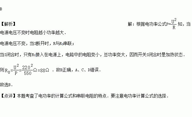 A.加热,220Ω B.加热,88Ω C.保温,88Ω D.保温,220Ω