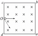 如图所示,正方形abcd区域内分布着垂直纸面向里的匀强磁场,O点是cd边的中点.一个带正电的粒子仅在磁场力的作用下,从O点沿纸面以垂直于cd边的速度射入磁场,经过时间t0刚好从c点射出磁场.现让该粒子从O点沿纸面以与Od成30°角的方向,分别以大小不同的速率射入磁场,则关于该粒子在磁场中运动的时间t和离开正方形区域位置,分析正确的是( )