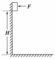 如图所示,水平恒力F=20 N,把质量m=0.6 kg的木块压在竖直墙上,木块离地面的高度H=6 m.木块从静止开始向下做匀加速运动,经过2 s到达地面.