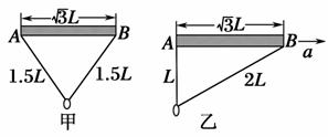 (2)若杆与环保持相对静止,在空中沿AB方向水平向右做匀加速直线运动,此时环恰好悬于A端的正下方,如图乙所示.