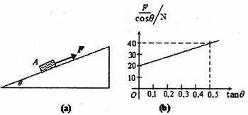 如图所示,在图(a)中,沿斜面的拉力F把质量为m的物块A沿粗糙斜面匀速向上拉,改变斜面倾角θ,使物块沿斜面向上匀速运动的拉力也随之改变,根据实验数据画出如图(b)所示的