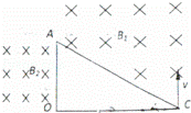 有一直角三角形OAC,OC长为12cm,∠C=30°,AC上方存在垂直纸面向里的匀强磁场,磁感应强度B1=1T,OA左侧也存在垂直纸面向里的匀强磁场,磁感应强度大小B2未知,一质量为m=8×10﹣10kg、电荷量q=1×10﹣4C的带正电粒子从C点以垂直于OC的速度v进入磁场,恰好经A点到达O点,不计粒子重力,求:
