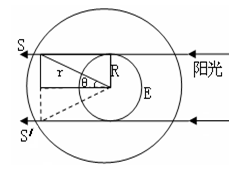 (20分)某颗地球同步卫星正下方的地球表面上有一观察者,他用天文望远镜观察被太阳光照射的此卫星。试问,春分那天(太阳光直射赤道)在日落后12小时内有多长时间该观察者看不见此卫星?已知地球半径为R,地球表面处的重力加速度为g,地球自转周期为T,不考虑大气对光的折射。