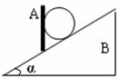 倾角为α的光滑斜面上有一个竖直的光滑挡板A,在它们之间放一个质量M的均匀的小球,如图,在平衡时,球对挡板的压力NA=__________;球对斜面的压力NB=__________。
