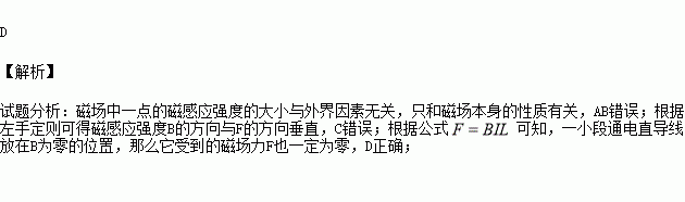 D.一小段通电直导线放在B为零的位置,那么它受到的磁场力F也一定为零