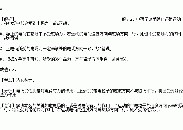 关于电荷所受的电场力和洛仑兹力,正确的说法是( )