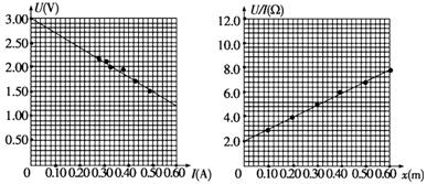 (2)根据测得的直径可以算得电阻丝的横截面积S=0.12×10-6m2,利用图丙可求得电阻丝的电阻率ρ为________Ω·m,图丙中图象截距的物理意义是 。(以上结果均保留两位有效数字)