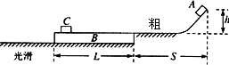 如图所示,光滑水平地面上放有一长木板B,其质量为M,长度L=3.0 m,B的右端紧靠台阶,上表面与台阶平齐.B上放有一质量为m的滑块C.现有一质量也为m的滑块A从h=1.0 m高的斜面顶端由静止滑下,然后冲上木板B,(转角处速度大小不变,只改变方向;转角的大小可忽略)但最终A恰好未能撞上C.设A与其接触面间的动摩擦因数均为μ=0.25,滑块A的起始位置与木板B右端的水平距离s=0.8 m,此过程中C与B恰好不发生相对滑动,不计滑块A、C的大小.已知M=3 m,取g=10 m/s2.