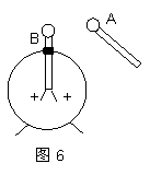 一个带正电的验电器如图6所示, 当一个金属球A靠近验电器上的金属球B时,验电器中金属箔片的张角减小,则( )