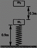Ò»ÇáÖʵ¯»ÉÊúÖ±¹Ì¶¨ÔÚµØÃæÉÏ£¬ÉÏÃæÁ¬½ÓÒ»¸öÖÊÁ¿Îªm1=1kgµÄÎïÌ壬ƽºâʱÎïÌåÀëµØÃæ0.9m£¬µ¯»ÉËù¾ßÓеĵ¯ÐÔÊÆÄÜΪ0.5J¡£ÏÖÔÚÔÚ¾àÎïÌåm1ÕýÉÏ·½¸ßΪ0.3m´¦ÓÐÒ»¸öÖÊÁ¿Îªm2=1kgµÄÎïÌå×ÔÓÉÏÂÂäºóÓ뵯»ÉÉÏÎïÌåm1ÅöײÁ¢¼´ºÏΪһÌ壬һÆðÏòÏÂѹËõµ¯»É¡£µ±µ¯»ÉѹËõÁ¿×î´óʱ£¬µ¯»É³¤Îª0.6m¡£Çó£¨gÈ¡10m/s2£©£º
