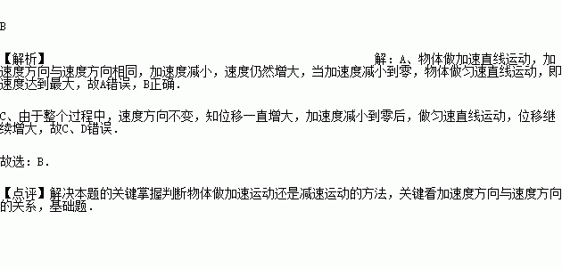 一物体以初速度V0、加速度a做匀加速直线运动,若物体从t时刻起加速度逐渐减小至0,则物体从t时刻开始( )