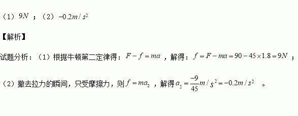一位工人沿水平方向推一质量为45kg的运料车,所用的推力为90N,此时运料车的加速度是1.8m/s2.求:(1)运料车受的的阻力为多大?