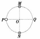 ÈçͼËùʾ£¬MN¡¢PQÊÇÔ²µÄÁ½ÌõÏ໥´¹Ö±µÄÖ±¾¶£¬OΪԲÐÄ¡£Á½¸öµÈÁ¿ÕýµçºÉ·Ö±ð¹Ì¶¨ÔÚM¡¢NÁ½µã¡£ÏÖÓÐÒ»´øµçµÄÁ£×Ó£¨²»¼ÆÖØÁ¦¼°Á£×ӶԵ糡µÄÓ°Ï죩´ÓPµãÓɾ²Ö¹ÊÍ·Å£¬Á£×ÓÇ¡ÄÜÔÚP¡¢QÖ®¼ä×öÖ±ÏßÔ˶¯£¬ÔòÒÔÏÂÅжÏÕýÈ·µÄÊÇ