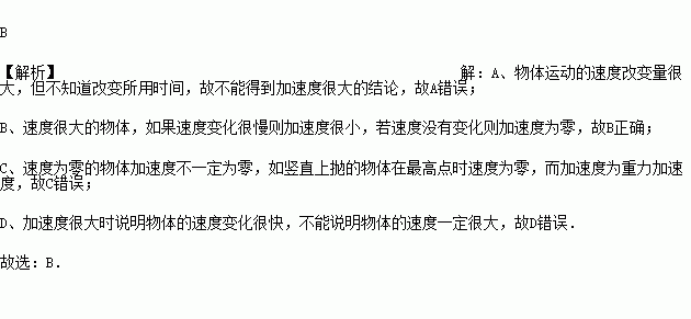 D.加速度很大时,运动物体的速度一定很大