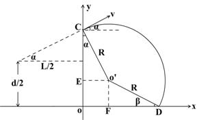 ,偏向角为α,在磁场中圆周运动半径为