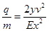 一平行板电容器中存在匀强电场,电场沿竖直方向。两个比荷(即粒子的电荷量与质量之比)不同的带正电的粒子a和b,从电容器边缘的P点(如图)以相同的水平速度射入两平行板之间。测得a和b与电容器极板的撞击点到入射点之间的水平距离之比为1∶2。若不计重力,则a和b的比荷之比是