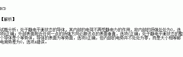 (多选)关于静电平衡状态的特征说法正确的是( )