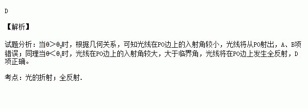 A.若θ>θ2,光线一定在OP边发生全反射