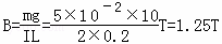 ¸ù¾Ý×óÊÖ¶¨Ôò£¬´Å¸ÐӦǿ¶ÈµÄ·½ÏòˮƽÏòÓÒ£® ´ð£ºËù¼Ó´Å³¡´Å¸ÐÇ¿¶ÈµÄ´óСΪ1.25T£¬·½ÏòˮƽÏòÓÒ£®