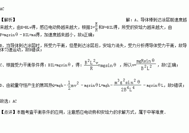 A.导体棒到达涂层前做加速度减小的加速运动