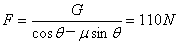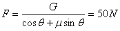 如图所示,重力为G=55N的物体在与竖直方向成θ=37°角的力作用下,恰能沿竖直墙壁在竖直方向做匀速运动,物体与墙壁间的动摩擦因数为μ=0.5,求力的大小为多大?