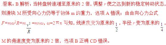 ת¶¯Ê±£¬MÀëÖá¾àÀëΪr£¬ÇÒÇ¡Äܱ£³ÖÎȶ¨×ª¶¯£®µ±×ªÅÌתËÙÔöÖÁÔÀ´µÄ2±¶£¬µ÷Õûrʹ֮´ïµ½ÐµÄÎȶ¨×ª¶¯×´Ì¬£¬Ôò»¬¿éM