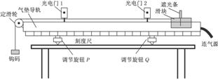 某同学利用如图3所示的气垫导轨装置验证机械能守恒定律。在气垫导轨上安装了两光电门1、2,滑块上固定一遮光条,滑块用细线绕过定滑轮与钩码相连。