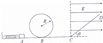 如图所示,一半径为R的竖直光滑圆轨道与水平轨道平滑连接,水平轨道上有一轻质弹簧,其左端固定在墙壁上,右端与质量为m、电荷量为+q的小物块(视为质点)接触但不相连,水平轨道AB段光滑,BC段粗糙且其长度L=3R,倾斜轨道CD段粗糙且与BC段平滑连接,倾斜轨道所在区域有水平向右的匀强电场,场强大小E=等手今向左推小物块压缩弹簧至某一位置后静止释放小物块,小物块由AB段进入圆轨道,通过圆轨道后在BC段和CD段上滑动,若小物块与BC段和CD段的动摩擦因数相同,倾斜轨道与水平面间的夹角θ=37°.重力加速度为g,取SIN37°=0.6,COS37°=0.8